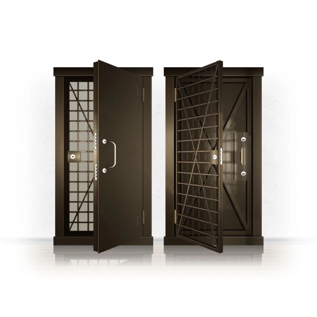 Металлические двери КХО и КХН представляют собой входные блоки, обладающие высоким уровнем взломостойкости и состоят из трех основных элементов: усиленного каркаса, сплошного металлического полотна и решетчатой двери. Дверной блок изготавливается из стального уголка 100*100 мм. Места крепления блока к стене цементируются и закрываются стальными наличниками шириной 40 мм. Крепеж заходит вглубь стены на 80 мм. В конструкции внешней створки монтируются ребра жесткости, для обшивки используется сталь толщиной не менее 3 мм. Внутренняя решетка изготавливается из прутка диаметром 16 мм. Размер ячеек решетки должен составлять не более 15 на 15 см. В точках пересечения прутья надежно приваривают друг к другу. В КХО и КХН необходимо поддерживать определенную температуру и влажность. Для этого внутреннее пространство глухой двери заполняется теплоизоляционным материалом, а по периметру двери приклеивается уплотнитель. Такие двери оборудуются замками с повышенным уровнем взломостойкости. Специализированные двери КХО и КХН в Зернограде могут быть оснащены сигнализацией, в конструкции могут быть проушины для навесного замка и элементами для опечатывания. Если идет речь о двери в комнату хранения оружия, в створке оборудуется окно для выдачи оружия и спец. средств, которое накрывается стальной дверцей.