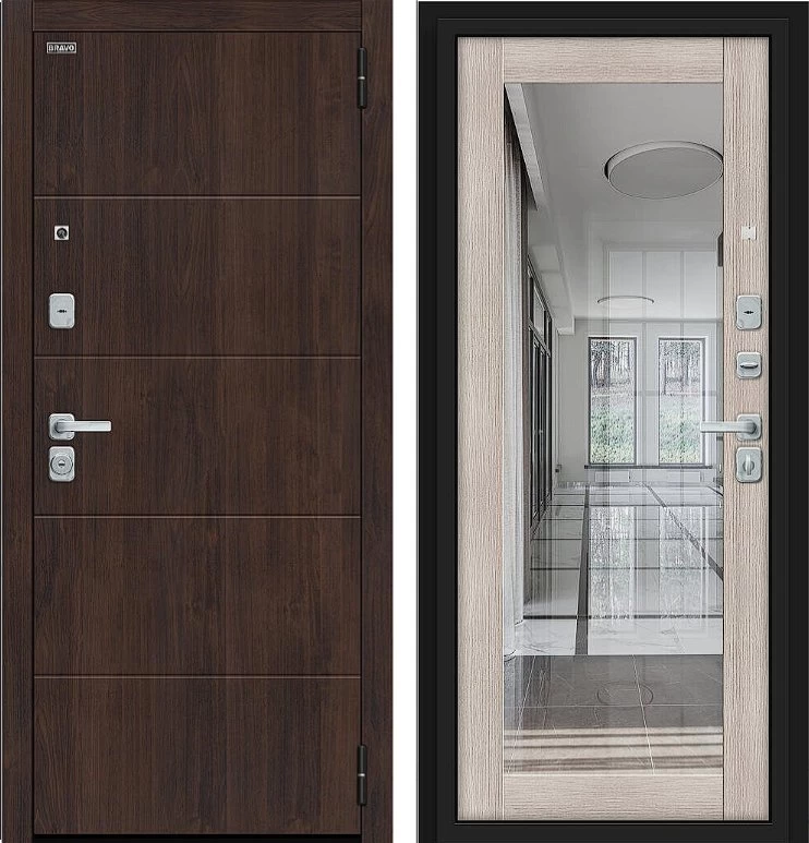 Надежная входная Дверь Браво Флэт/BChrome Almon/Cappuccino Melinga премиум класса по цене 42 399 руб. Большая толщина стали защитит от проникновения в ваш дом, квартиру или коттедж. Используется очень качественная фурнитура: замки, цилиндры, ручки, защелки. Покрытие и отделка двери изготовлено под внимательным контролем производителя. Дверь имеет долгий срок службы и гарантию.